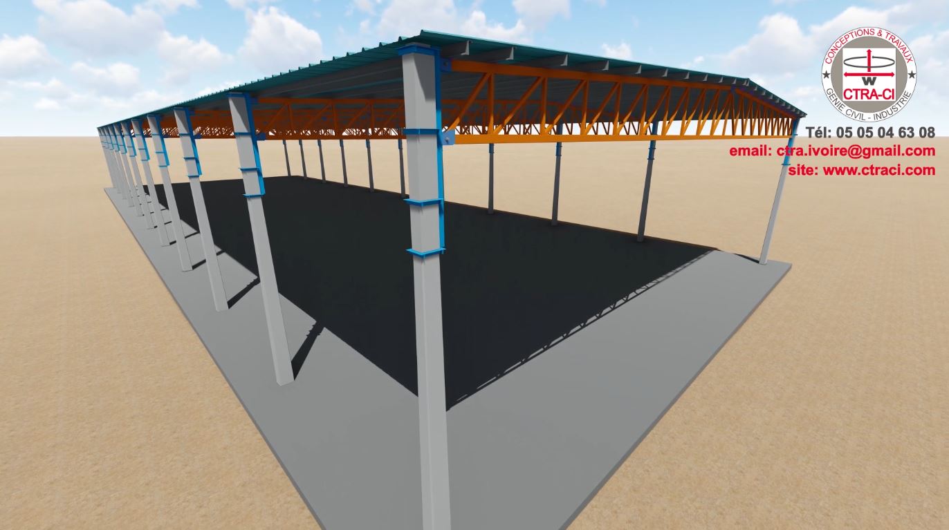 Couverture métallique de 1200 m² adaptée sur des poteaux électrique en BA